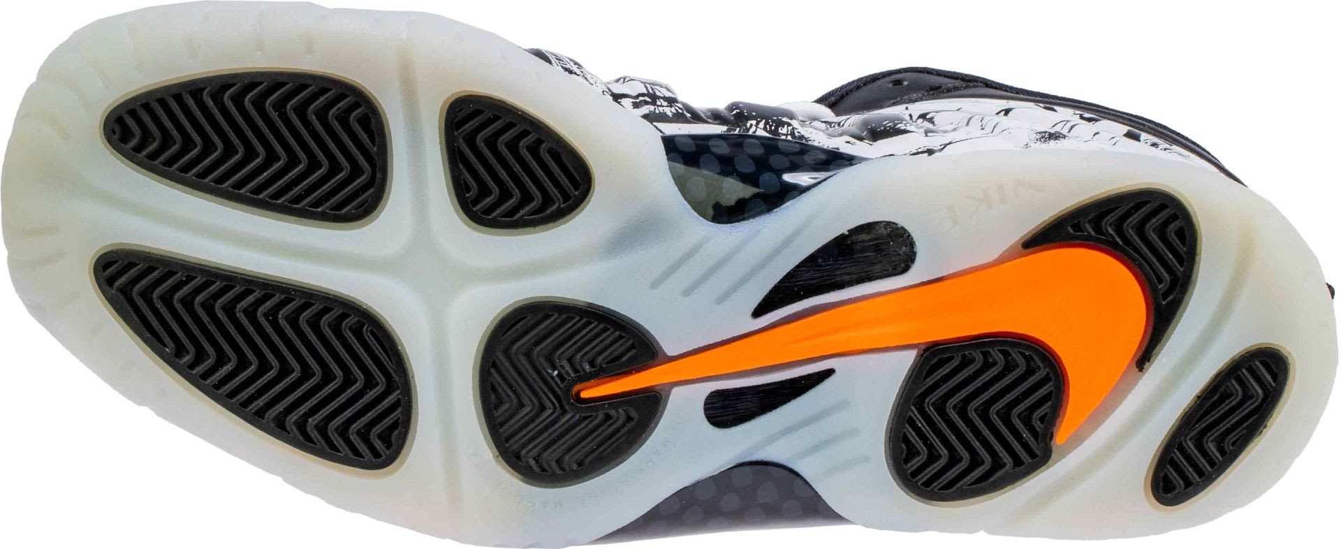 As summer nears its end, Nike appears to be gearing up for the Halloween season with the release the new Nike Air Foamposite One. Slated to release sometime this October, this new iteration of the Foamposite features a Black and White colorway with a leather upper, hits of Total Orange on the swoosh and Foamposite logo and translucent bottoms.