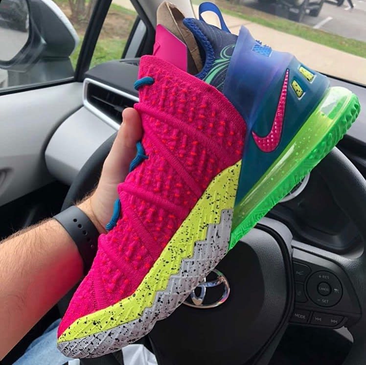 Images have surfaced of a new LeBron 18 said to be dubbed “Los Angeles By Night,” an apparent answer to the “Los Angeles By Day” style set to release in November. Somewhat reminiscent of 90s sportswear, the shoe sports a mix of bright neon tones, including pink, yellow, green and blue, slightly offset by a section of grey on the sole. Locals are already hitting comment sections to clarify that this is not what the city looks like at night, but don’t let reality get in the way of a strong colorway. As of now, Nike hasn’t confirmed the nickname or color inspo.