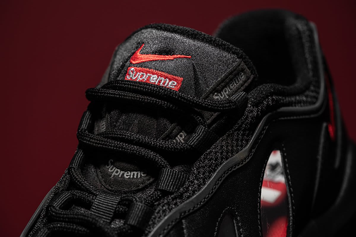 UPDATE (04/13): It’s been quite a few months since Supreme’s upcoming Nike Air Max 96 collab initially surfaced and now, a second colorway has leaked courtesy of @Atatf. This time, the classic running shoe comes dressed in a black-based leather upper combined with translucent panels featured at the forefoot as well as red hits on the Swoosh, the tongue, and insole. As of now, release details for the Supreme x Nike Air Max 96 collab have yet to be announced.