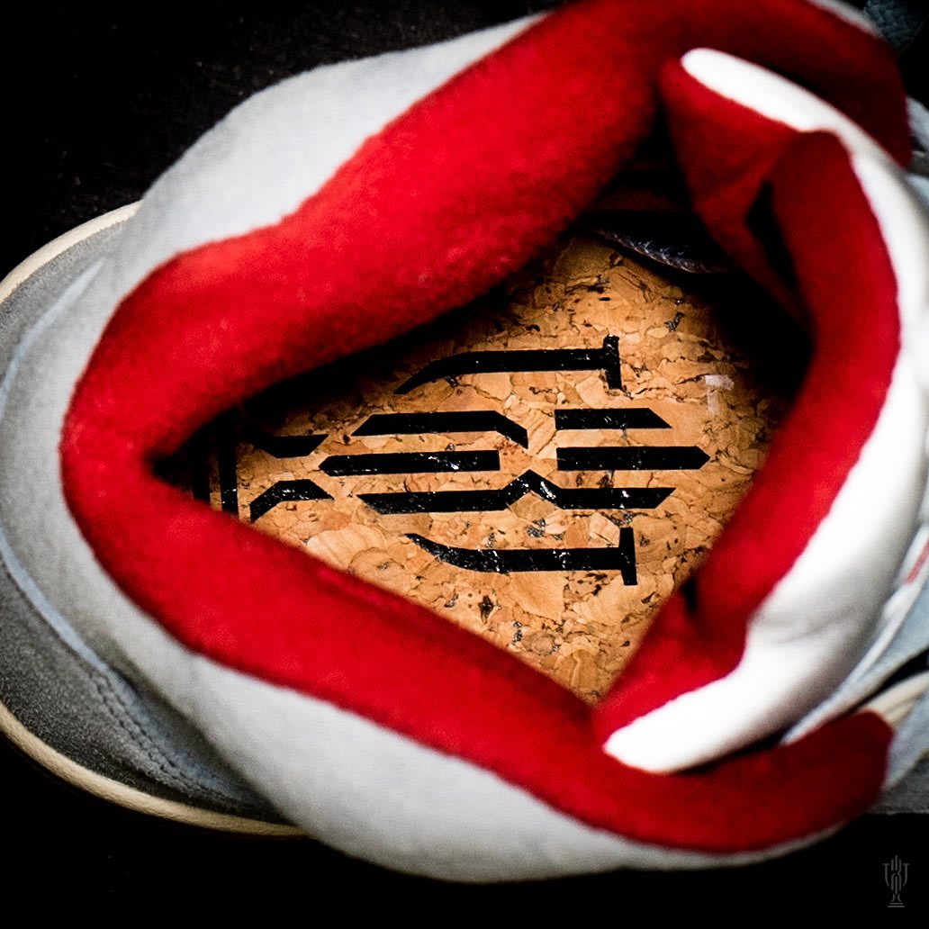 UPDATE (05/13): Battle rapper and television personality Conceited is the latest person to show off his Trophy Room x Air Jordan 5s. He recently took to Instagram to give a detailed look at the friends and family “University Red” colorway. The latest images show off mismatched branding on the upcoming collab. The left shoe features a “5” and Trophy Room logo embroidered on the heel, while the right foot opts to showcase OG “23” and “Nike Air” branding.